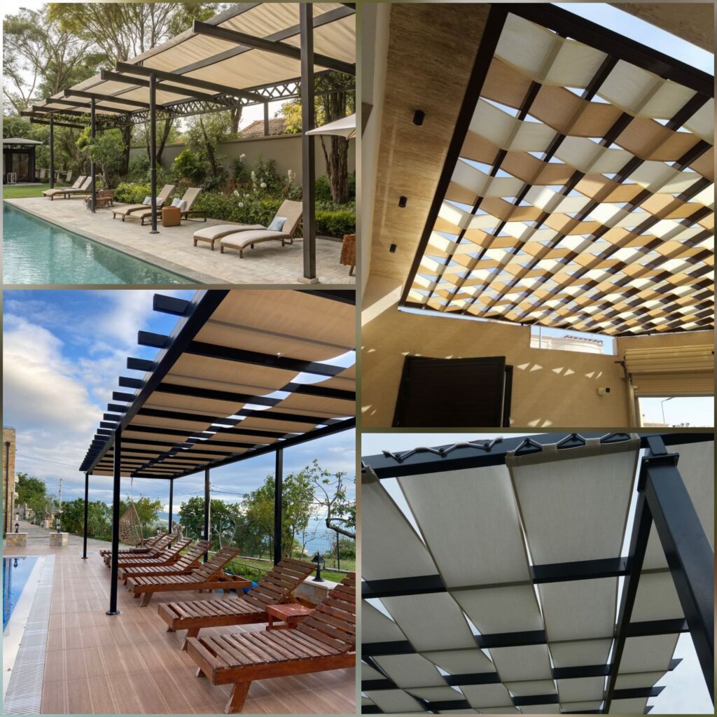 نحرص على استخدام أفضل المواد التي تتحمل حرارة الشمس والعوامل الجوية، مع تشطيبات أنيقة تناسب تصميم المكان وتدوم لفترة طويلة.